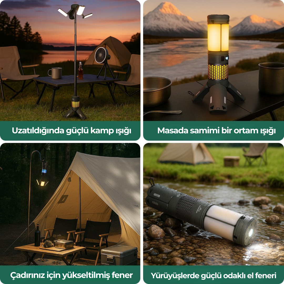 Maksimum 91 cm’ye kadar uzayarak kamp alanınızda güçlü ve geniş bir üstten aydınlatma sağlar.