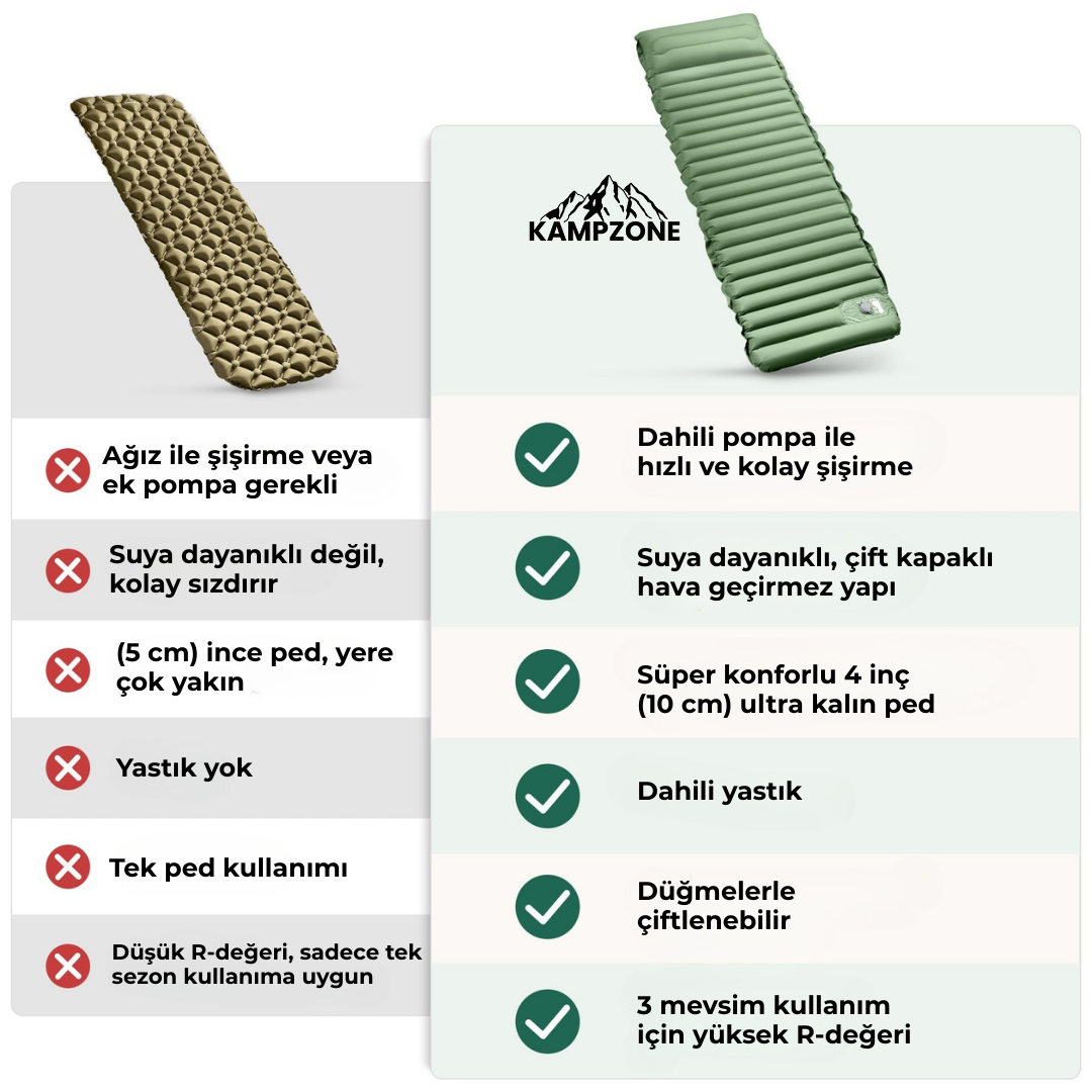 Rakiplerden farklı olarak, Kampzone size sadece bir mat değil, konforlu bir deneyim sunar. İşte fark yaratan detaylar: